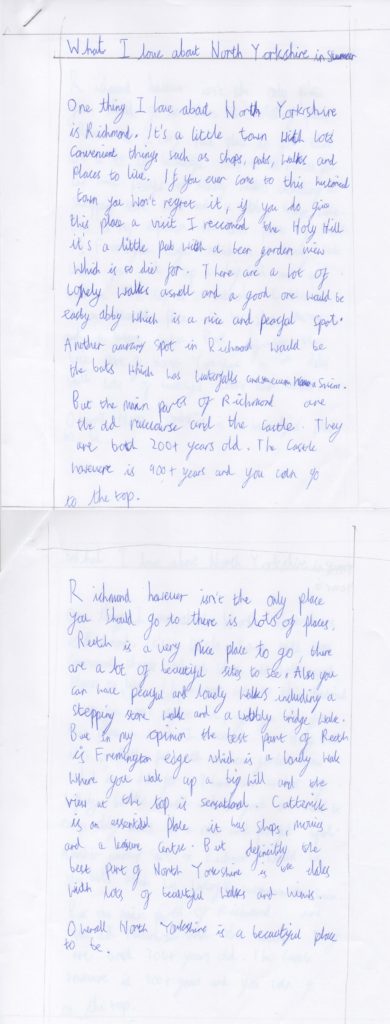 View the entries to CPRE North Yorkshire’s school writing competition 2021–2022 from St. Mary’s RC Primary School.